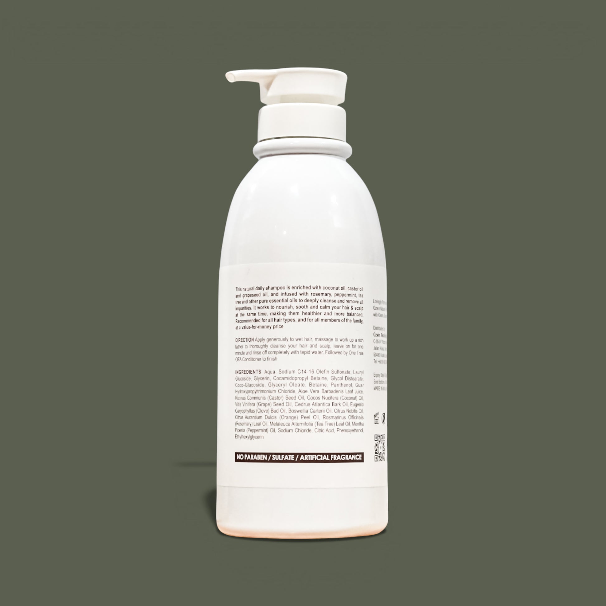 Apply generously to wet hair, massage to work up a rich lather, leave on for one minute, and rinse off completely with tepid water. Follow with One Tree OFA Conditioner to finish.
